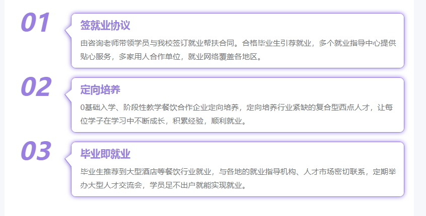 2.指導(dǎo)創(chuàng)業(yè):廣州西點(diǎn)軍校是一所專業(yè)的慕斯蛋糕技術(shù)培訓(xùn)學(xué)校。我們不必?fù)?dān)心學(xué)習(xí)后找不到工作或創(chuàng)業(yè)。我們都會(huì)有指導(dǎo)和渠道。