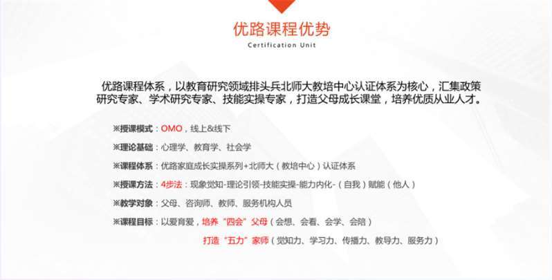 5.優(yōu)路教育與北京師范大學聯(lián)合頒發(fā)國家認可的家庭教育導師證書,全通用;