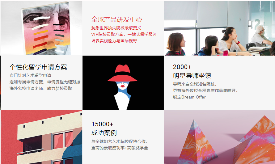 斯芬克設(shè)立全球產(chǎn)品研發(fā)中心;吸收西方藝術(shù)教育精髓,針對(duì)亞洲學(xué)生的獨(dú)特性,研發(fā)設(shè)計(jì)出一整套完善的藝術(shù)設(shè)計(jì)教育體系,包含課程產(chǎn)品有;英美本研作品集課程、藝術(shù)呢藤計(jì)劃、留學(xué)電請(qǐng)服務(wù)、國(guó)際學(xué)校合作課程、音樂(lè)藝術(shù)教育課程、日本升學(xué)產(chǎn)品、海外夏校冬校、斯芬克學(xué)院、SFK·IED時(shí)尚營(yíng)銷碩士課程、伊莫未特少兒藝術(shù)等。同時(shí),與國(guó)際課程體系接軌,包含IGCSE、A-Level課程、AP課程、BTEC國(guó)際預(yù)科課程。2021年,斯芬克與新東方國(guó)際雙語(yǔ)學(xué)校聯(lián)合打造國(guó)際藝術(shù)高中。幫助眾多學(xué)員順利完成藝術(shù)留學(xué),斯芬克國(guó)際藝術(shù)教育被許多學(xué)員評(píng)為武漢五大藝術(shù)留學(xué)中介機(jī)構(gòu)之一。