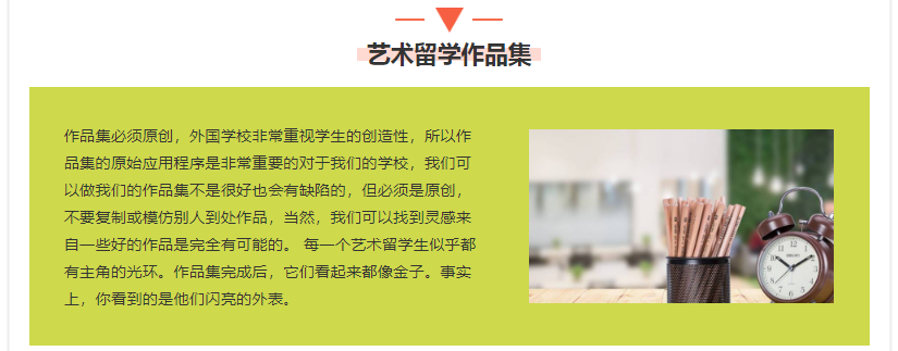 因?yàn)闄n案夾在準(zhǔn)備時(shí)需要體現(xiàn)出申請(qǐng)者清晰連貫的邏輯性,所以我建議大家找個(gè)連續(xù)性較好的時(shí)間(比如寒暑假),將作品集做計(jì)劃,使自己能有一個(gè)完整的創(chuàng)作思路。因此,一般1-2年的時(shí)間申請(qǐng)比較合適。尤其是那些申請(qǐng)本科的同學(xué),因?yàn)榭赡芤獪?zhǔn)備A-level和GCSE的問(wèn)題,更要提前準(zhǔn)備。