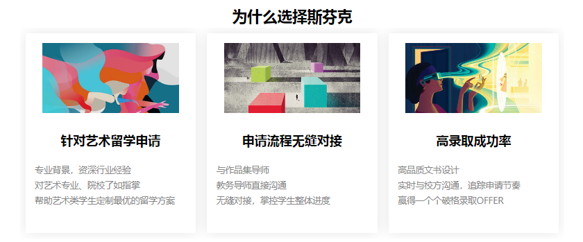 斯芬克專注于國(guó)際化啟發(fā)式教學(xué),以專業(yè)為核心;能力培養(yǎng)為目的,培養(yǎng)學(xué)生獲得敏銳的設(shè)計(jì)思維、創(chuàng)新力、團(tuán)隊(duì)協(xié)作能力和動(dòng)手實(shí)踐能力,放眼不同領(lǐng)域進(jìn)行學(xué)習(xí)和探索實(shí)踐,快速向國(guó)際化學(xué)習(xí)環(huán)境過(guò)渡。目前培訓(xùn)可覆蓋英美日澳加等13個(gè)發(fā)達(dá)國(guó)家,50+藝術(shù)細(xì)分專業(yè)。