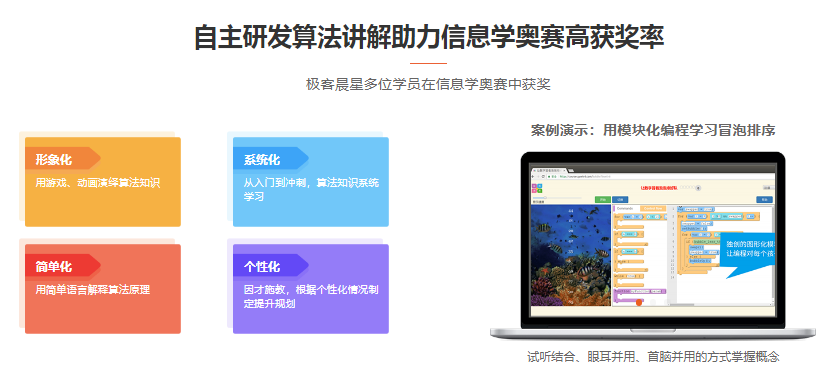 比較出名少兒編程培訓(xùn)機(jī)構(gòu)有哪些?是家長比較擔(dān)心問題,家人該如何選擇呢,出名的培訓(xùn)機(jī)構(gòu)有哪些特點呢?一般比較出名的少兒編程培訓(xùn)機(jī)構(gòu)的辦學(xué)資質(zhì)和管理制度比較完善。出名的機(jī)構(gòu)里面有比較優(yōu)秀的老師,教師是一個機(jī)構(gòu)的靈魂所在。一個好的少兒編程培訓(xùn)機(jī)構(gòu)之所以出名是因為你它的口碑比價好,口碑是一個機(jī)構(gòu)發(fā)展壯大的動力。接下來小編為您介紹一家比較出名的少兒編程線上培訓(xùn)機(jī)構(gòu)-極客晨星。