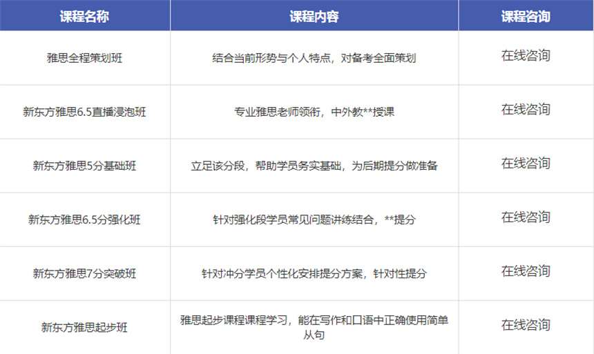 1、新東方在線著重學(xué)員在聽(tīng)力、口語(yǔ)、閱讀、寫作語(yǔ)言運(yùn)用能力的強(qiáng)化,精準(zhǔn)突出雅思各項(xiàng)高分拿分點(diǎn),梳理各項(xiàng)運(yùn)用技巧和考試盲區(qū)。全面分析學(xué)員個(gè)體情況,穩(wěn)固和優(yōu)化弱項(xiàng),提升學(xué)員的雅思成績(jī)。