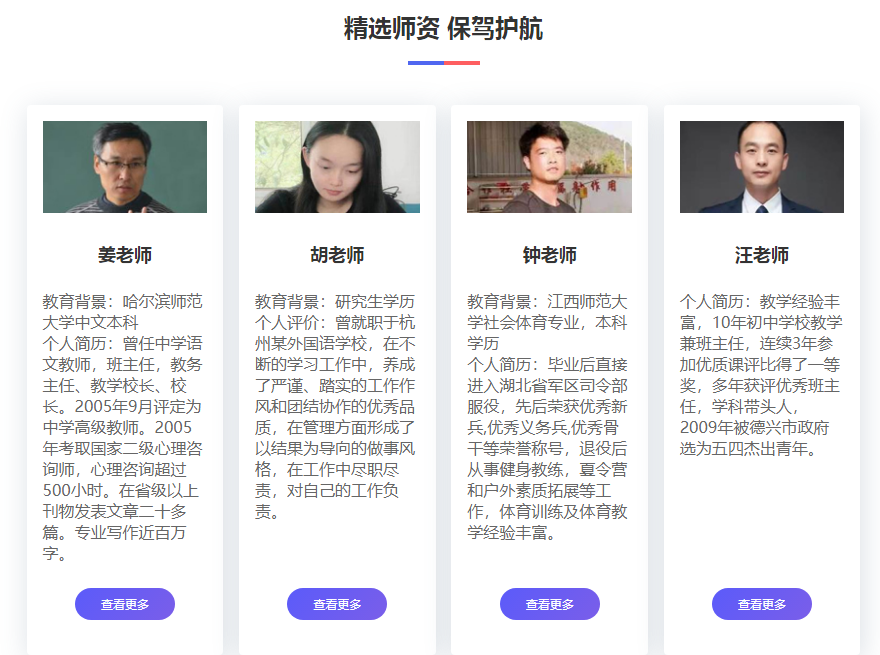 3.之江中復(fù)系統(tǒng)先進(jìn),是全日制復(fù)讀輔導(dǎo)培訓(xùn)學(xué)校。教師均為準(zhǔn)備課程體系的專業(yè)教師,備考經(jīng)驗(yàn)豐富。