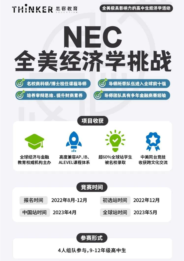 強推!藤校、G5高認可的經(jīng)濟學(xué)競賽-NEC全美經(jīng)濟挑戰(zhàn)賽!