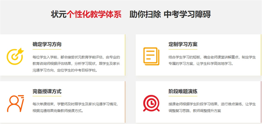 狀元教育依靠資深獨(dú)創(chuàng)的個(gè)性化教學(xué)系統(tǒng)和多年的教學(xué)經(jīng)驗(yàn),能夠找準(zhǔn)學(xué)生的學(xué)習(xí)問題所在,對癥下藥,實(shí)施真正的“個(gè)性化”教育。通過“一對一”授課模式,教師能夠根據(jù)學(xué)生的個(gè)性、學(xué)習(xí)習(xí)慣和掌握知識程度,制定個(gè)性化的教學(xué)計(jì)劃,提供精準(zhǔn)的輔導(dǎo)?。