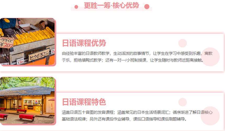 以上就是仟學(xué)網(wǎng)連老師對(duì)江蘇蘇州比較好的十大日語培訓(xùn)班排名一覽大全的相關(guān)介紹,更多河南木子教育、日語課程的相關(guān)咨詢,您可以撥打頁面上的電話咨詢了解,也可以在線留下您的聯(lián)系信息。我們將為您提供一對(duì)一的咨詢服務(wù)!