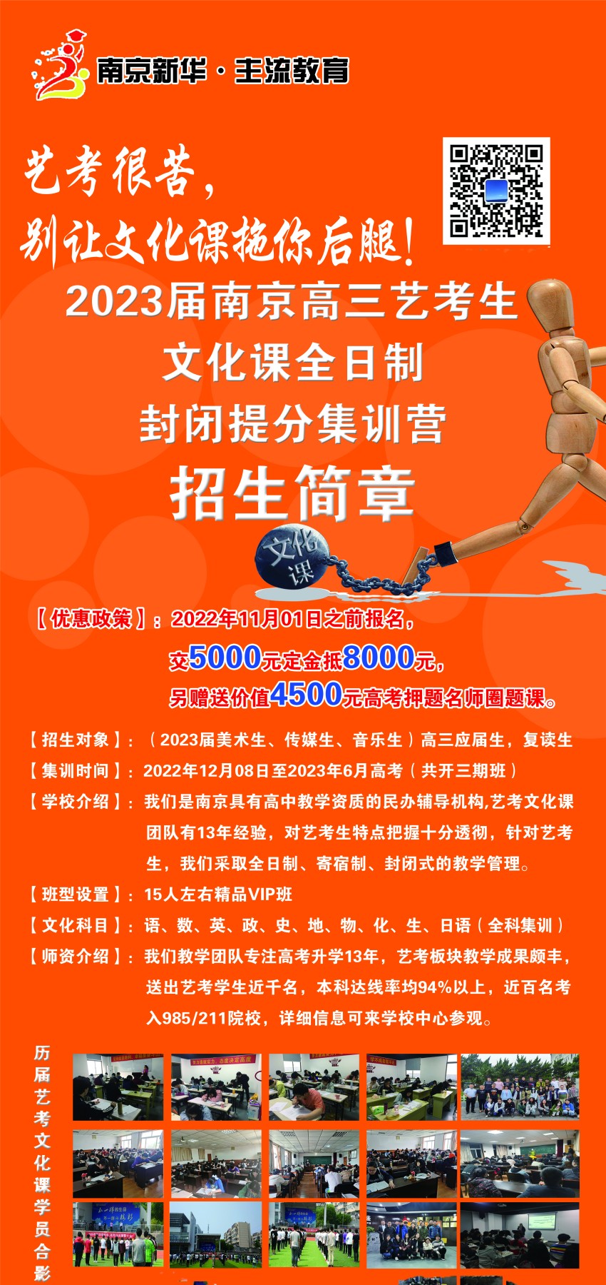 江蘇宜興十大精選高中藝考文化課輔導(dǎo)學(xué)校排名一覽學(xué)校:南京新華學(xué)校 發(fā)布時間:2022-11-01 18:00:31 瀏覽次數(shù):528