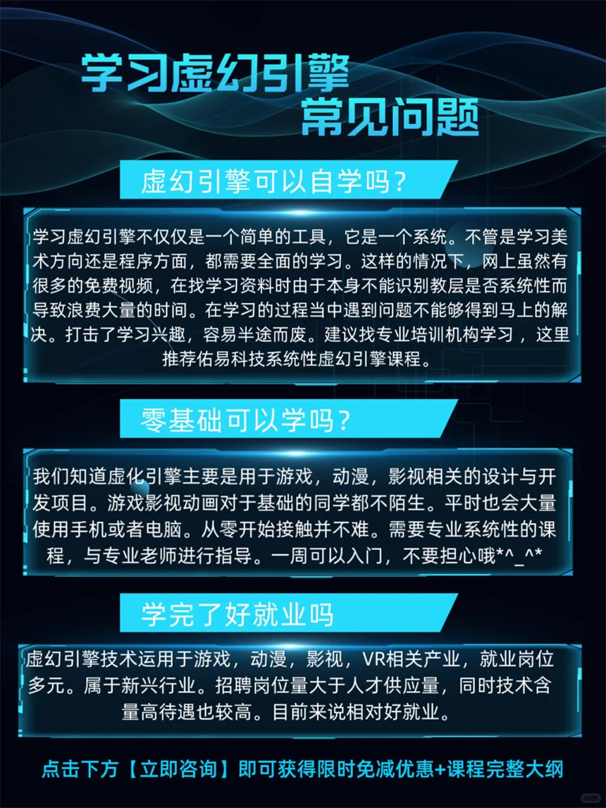 北京本地虛幻引擎游戲培訓(xùn)機(jī)構(gòu)十大名單推薦一覽;自2004年至今,佑易科技一直深耕于游戲行業(yè),從游戲原創(chuàng)到游戲人才培養(yǎng),再到游戲公司的孵化,真正踐行產(chǎn)、學(xué)、研一體化職業(yè)教育方式,輸出畢業(yè)生遍布80%的游戲公司,所經(jīng)營(yíng)培訓(xùn)基地,被譽(yù)為游戲行業(yè)的人才孵化基地。