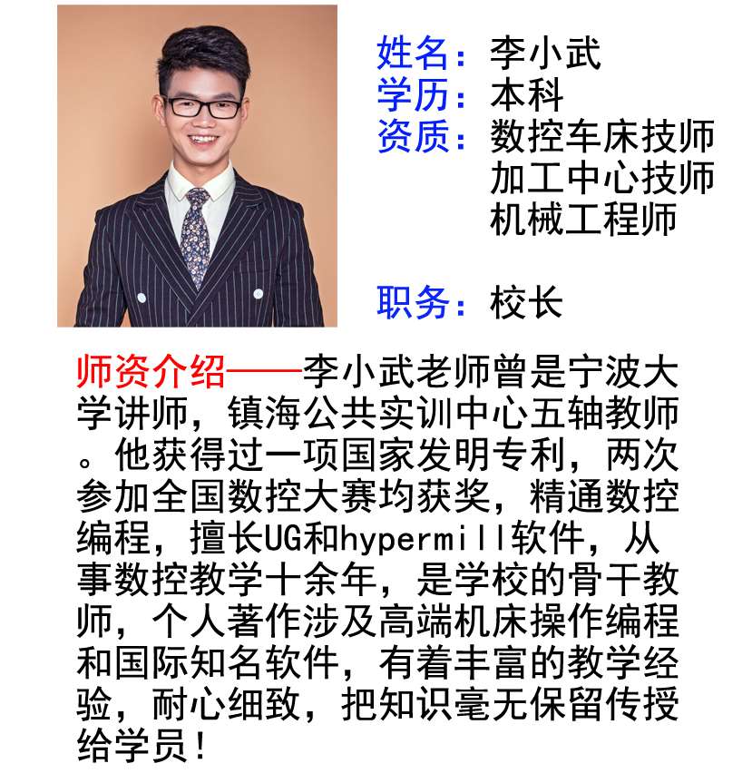 寧波梓龍職業(yè)培訓(xùn)學(xué)校(寧波黃泰數(shù)控培訓(xùn)學(xué)校)成立于2003年6月,總部坐落于寧波市鎮(zhèn)海區(qū)駱駝街道杭甬路1288號(hào),擁有實(shí)際加工機(jī)床設(shè)備(數(shù)控車(chē)床、三軸加工中心、四軸加工中心、五軸加工中心、工業(yè)機(jī)器人、電工焊工實(shí)訓(xùn)設(shè)備)和數(shù)控、模具、電工PLC、焊接、機(jī)器人等多專(zhuān)業(yè)師資人才。