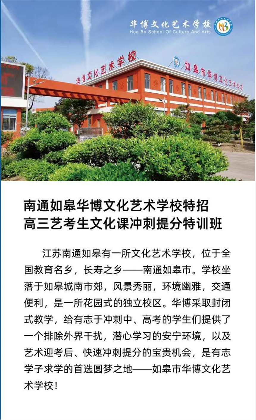 以上是仟學(xué)網(wǎng)連老師對江蘇如皋市2023屆高考藝考文化課輔導(dǎo)學(xué)校前十強(qiáng)排名更新的相關(guān)介紹,更多江蘇華博教育、高考復(fù)讀、高考藝考文化課輔導(dǎo)的相關(guān)咨詢,您可以撥打頁面上的電話咨詢了解, 也可以在線留下您的聯(lián)系信息。我們將為您提供一對一的咨詢服務(wù)!