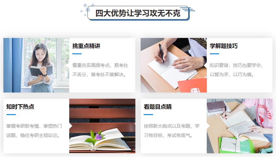 3.精品小班課程:量身定制核心輔導(dǎo),為廣大學(xué)員提供個性化輔導(dǎo),在考研學(xué)子中有良好的口碑。