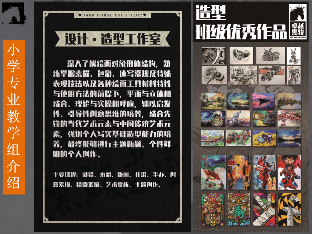 深圳市卓越黑駿畫室成立于2013年,主營美術(shù)類培訓(xùn),現(xiàn)旗下項(xiàng)目:主營美術(shù)類國內(nèi)中考、高考、考級、成人興趣班等;少兒美術(shù)培訓(xùn)類;公司擁有明確的發(fā)展定位、美術(shù)類培訓(xùn)行業(yè)專業(yè)教學(xué)老師、專業(yè)的教學(xué)理念、完整的成體系教學(xué)、成熟的師資培訓(xùn)體系。開辦至今,培養(yǎng)了大批國內(nèi)、國際藝術(shù)人才,積累了良好的業(yè)界口碑。卓越黑駿-旨在打造一站式美術(shù)培訓(xùn)行業(yè)專業(yè)機(jī)構(gòu)。