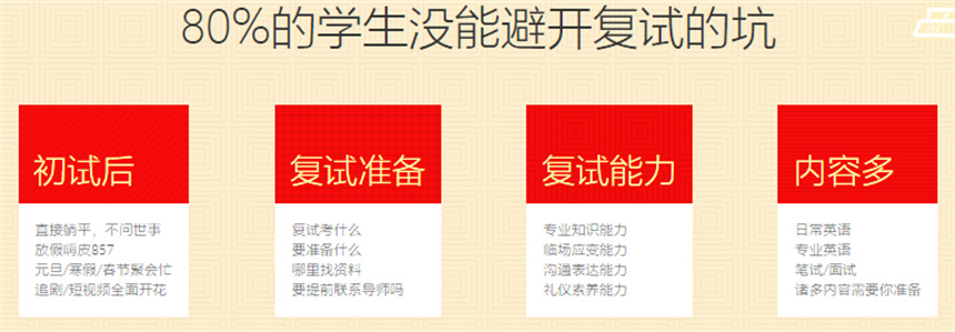 3、金程考研為不同專業(yè)的考生制定專屬課程產(chǎn)品,為報(bào)考的學(xué)員提供的考研復(fù)試調(diào)劑信服務(wù);