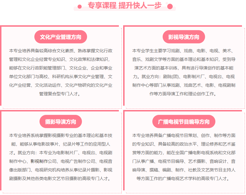 教學目的:在經(jīng)驗豐富師資的教學下,幫助學員備考編導導演課程