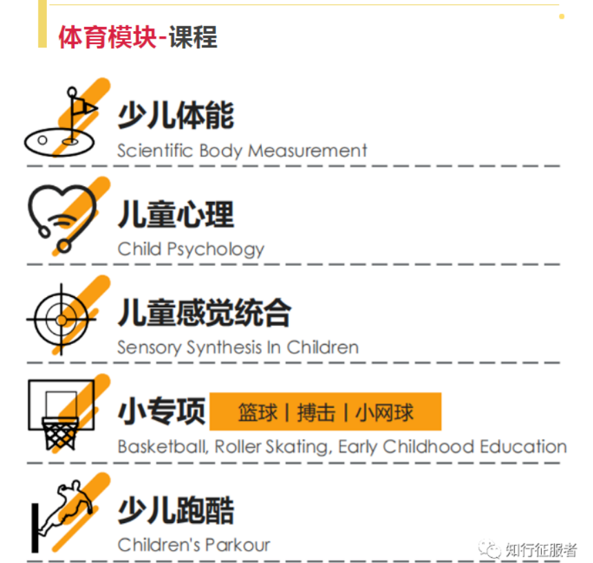 針對(duì)亞洲兒童,根據(jù)他們的年齡特點(diǎn)和發(fā)育情況,精心設(shè)計(jì),分為3-6歲兒童、7-12歲兒童和青少年三個(gè)階段的訓(xùn)練方法和思路,開發(fā)了體能課程。此外,還有很多訓(xùn)練課程,比如豐富的游戲,用特色運(yùn)動(dòng)解決孩子的健康和身體問題,還有針對(duì)孩子的專項(xiàng)訓(xùn)練,開設(shè)減肥、增高、平衡等課程。