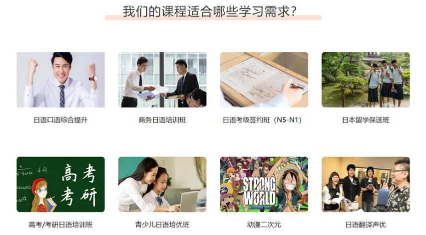 針對需要學(xué)習(xí)日語或即將參加日語語言考試的學(xué)員設(shè)置的課程,根據(jù)學(xué)員需求及目標(biāo)進(jìn)行訂制化的1對1培訓(xùn),在短期內(nèi)幫助學(xué)員掌握一門新的語言能力、攻克日語考試,幫助學(xué)員提升日語口語的能力。