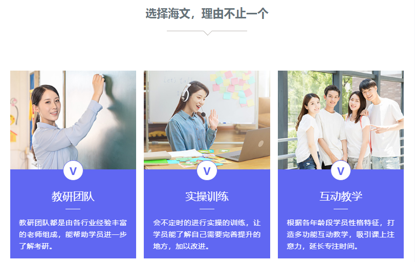 山東威海考研機(jī)構(gòu)排名前十哪個(gè)好?海文擁有專屬的教學(xué)資源支持,從高校選擇、筆試、復(fù)試,海文擁有多維教學(xué)資源支持;優(yōu)秀教師,教學(xué)經(jīng)驗(yàn)豐富;完善的教學(xué)研究體系;根據(jù)學(xué)生的學(xué)習(xí)情況,根據(jù)學(xué)生的才能,不定期完善課程,實(shí)時(shí)關(guān)注學(xué)生的學(xué)習(xí)情況。課前預(yù)習(xí)、課堂問(wèn)答、課后問(wèn)答、家庭作業(yè)評(píng)價(jià)、階段模型考試,基于歷年真實(shí)問(wèn)題、大綱和熱點(diǎn),撰寫內(nèi)部教材。