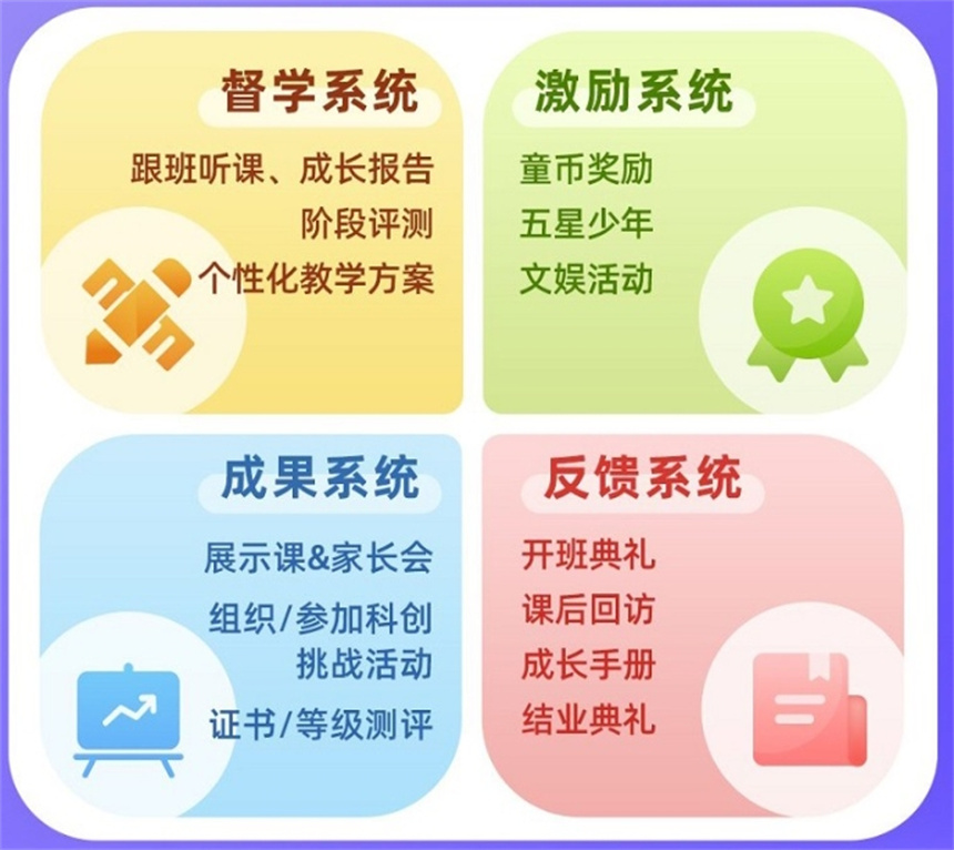3.規(guī)范化的教學(xué)課程,每節(jié)課精心設(shè)計(jì)八個(gè)環(huán)節(jié),環(huán)環(huán)相扣,增加學(xué)習(xí)效果。