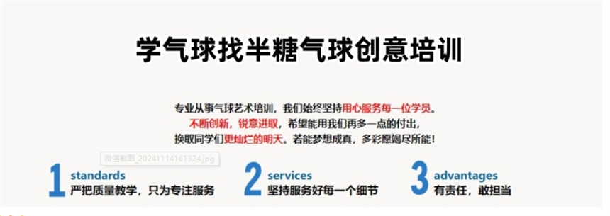 以上是仟學網(wǎng)王老師為大家整理的關于“2025徐州5大氣球造型培訓口碑好的學校人氣排名介紹”的相關內容,如果你想了解氣球培訓、氣球創(chuàng)意設計、個性化商業(yè)氣球、婚禮氣球、生日氣球場景布置等相關的信息,歡迎咨詢在線客服老師!