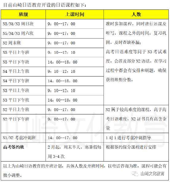 山崎教育涵蓋了日語線下課、網(wǎng)絡(luò)直播課,1對1口語、山崎高考日語課程、留學(xué)日語培訓(xùn)班等多項業(yè)務(wù),截止目前,山崎教育在讀學(xué)生已近百名,山崎日語擁有一支充滿活力的高素質(zhì)教師隊伍。日籍教師敬業(yè)、認(rèn)真,經(jīng)驗豐富,場景化、互動式授課生動活潑。中國教師三分之二皆為海歸派,日語發(fā)音純正、流利,語法講解精辟、透徹、獨到。