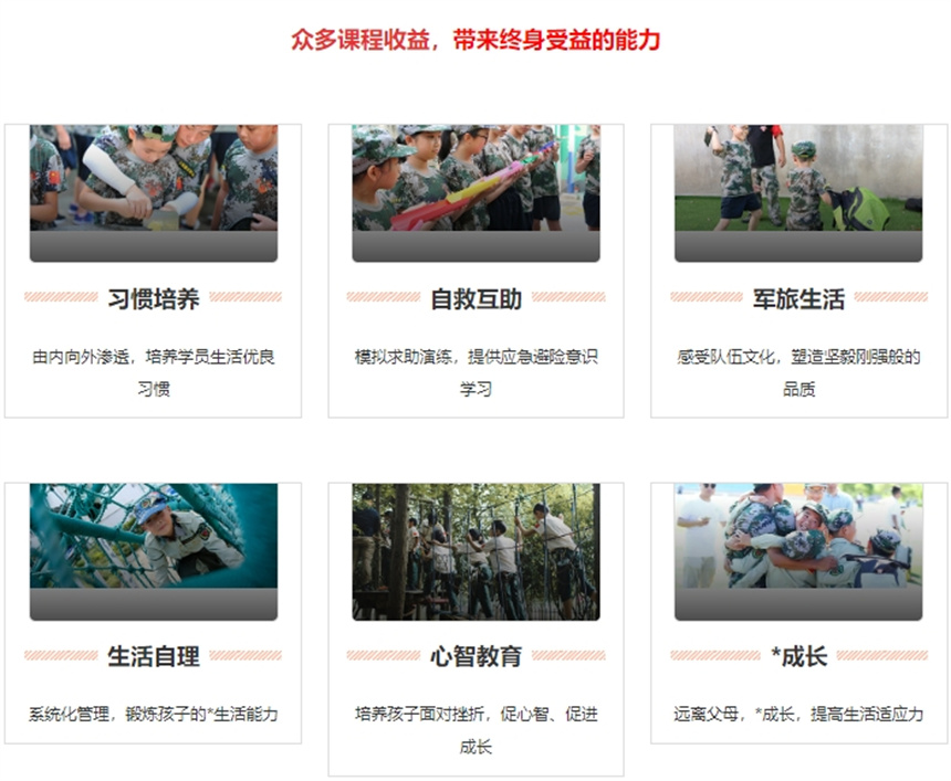 對學員進行全封閉式軍事化管理,通過有針對性的系統(tǒng)化訓練,改變他們的不良習慣,增強孩子們的心理素質,挖掘他們的潛能,培養(yǎng)他們的學習興趣,使他們學會做人、學會感恩、學會做事。