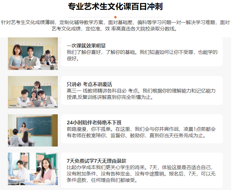 以上是仟學(xué)網(wǎng)董老師分享的長沙十大2023高考補(bǔ)習(xí)學(xué)校排名推薦一覽的相關(guān)內(nèi)容。如果您想了解更多關(guān)于高三復(fù)讀,高考復(fù)讀學(xué)校的信息和招生情況,可以咨詢在線老師或致電頁面上的電話聯(lián)系我們。我們將為您提供一對一的咨詢服務(wù)。