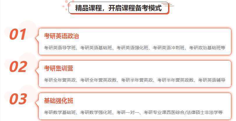 啟航考研目前設(shè)有考研百日集訓(xùn)營、考研集訓(xùn)營、考研培訓(xùn)等課程,不同的學(xué)員可根據(jù)自身的學(xué)習(xí)情況進行選擇。而且考慮到學(xué)員們的學(xué)習(xí)時間安排問題,我們采用線上線下相結(jié)合的模式進行教學(xué),讓不能來學(xué)校上課的學(xué)員,也能通過線上的方式,及時地學(xué)習(xí),靈活上課。