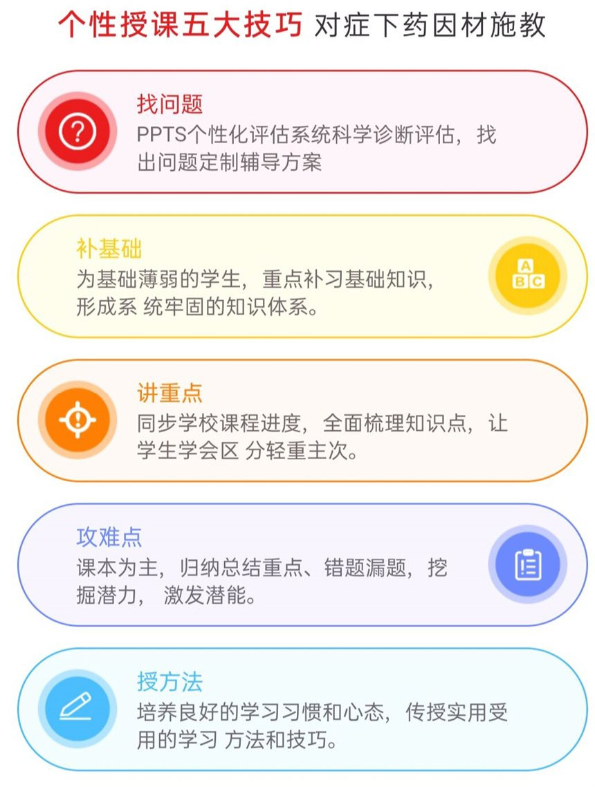 4、主推課程:始終專注為高中學(xué)生提供個性化輔導(dǎo)。授課模式包括1對1輔導(dǎo)、在線輔導(dǎo)等。