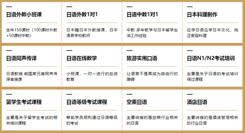 日籍外教:均來自日本,經(jīng)過日語教育專業(yè)學(xué)習(xí),并且有日本語專門語言學(xué)校教學(xué)經(jīng)驗(yàn),從事日語教育教學(xué)相關(guān)工作的課程