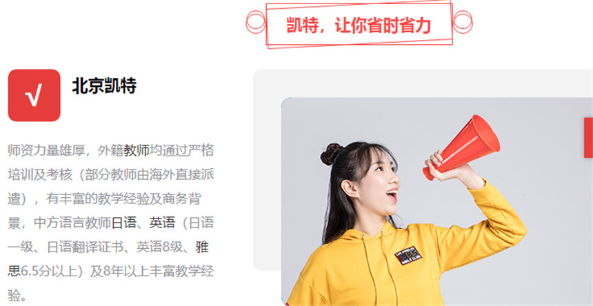 國內(nèi)十大專業(yè)度高的的小語種培訓(xùn)學(xué)校名單榜首一覽;凱特文化傳媒有限公司旗下的凱特語言創(chuàng)立于2012年,是一家專業(yè)從事語言培訓(xùn)的機(jī)構(gòu),專注于為廣大客戶提供專業(yè)的外語培訓(xùn)服務(wù)。目前在北京擁有兩所培訓(xùn)中心,幫助了成百上千名學(xué)員自信說外語。為學(xué)員提供世界水準(zhǔn)的課程,幫助學(xué)員養(yǎng)成高效的學(xué)習(xí)習(xí)慣,課程體系以實(shí)用為導(dǎo)向,由淺入深,涵蓋零起點(diǎn)-實(shí)際交流-商務(wù)水平-翻譯水平,適合不同水平、不同需求的學(xué)生?!霸兜暮M饨虒W(xué)體系”“原汁原味的海外服務(wù)體系”以學(xué)員為中心,利用面對面活動(dòng)教學(xué),由中方語言教師指導(dǎo)和海外直派外籍教師小班授課,并有國際文化俱樂部課和課外活動(dòng)讓學(xué)員在場景中實(shí)現(xiàn)流利外語脫口而出,營造如同海外的語言環(huán)境。