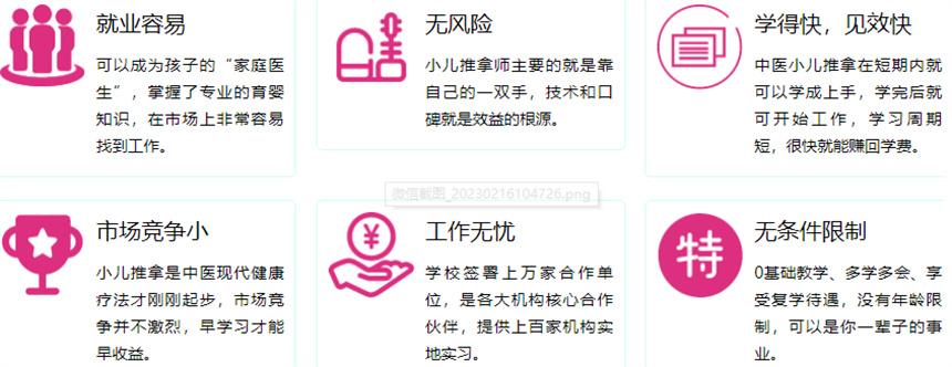 2、師資力量雄厚--授課老師都是實(shí)際操作經(jīng)驗(yàn)豐富的老師,杜平老師,從事中醫(yī)推拿多年,全國較受歡迎兒推講師,兒推講師綜合素質(zhì)評(píng)比優(yōu)勝獎(jiǎng),多次獲得省部級(jí)優(yōu)秀講師、省級(jí)愛心大使、優(yōu)秀志愿者等榮譽(yù)稱號(hào)。