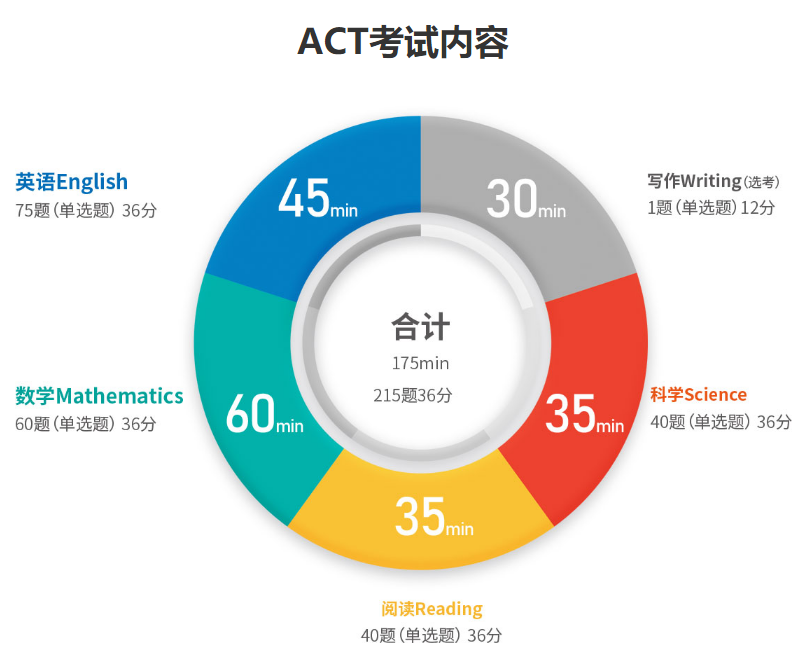 出題方式比較靈活,考驗(yàn)對(duì)高中知識(shí)的掌握和邏輯能力,必考科目為四個(gè)部分:英語(yǔ)、數(shù)學(xué)、閱讀、科學(xué),全部為選擇題,共215道??偡?6分,考試時(shí)間共175分鐘。