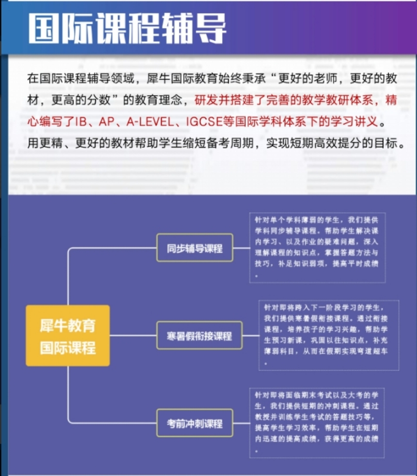 北京2024國際學(xué)校課程輔導(dǎo)培訓(xùn)機(jī)構(gòu)10top排行榜一覽學(xué)校:犀牛國際教育 發(fā)布時間:2024-06-12 10:16:15 瀏覽次數(shù):238