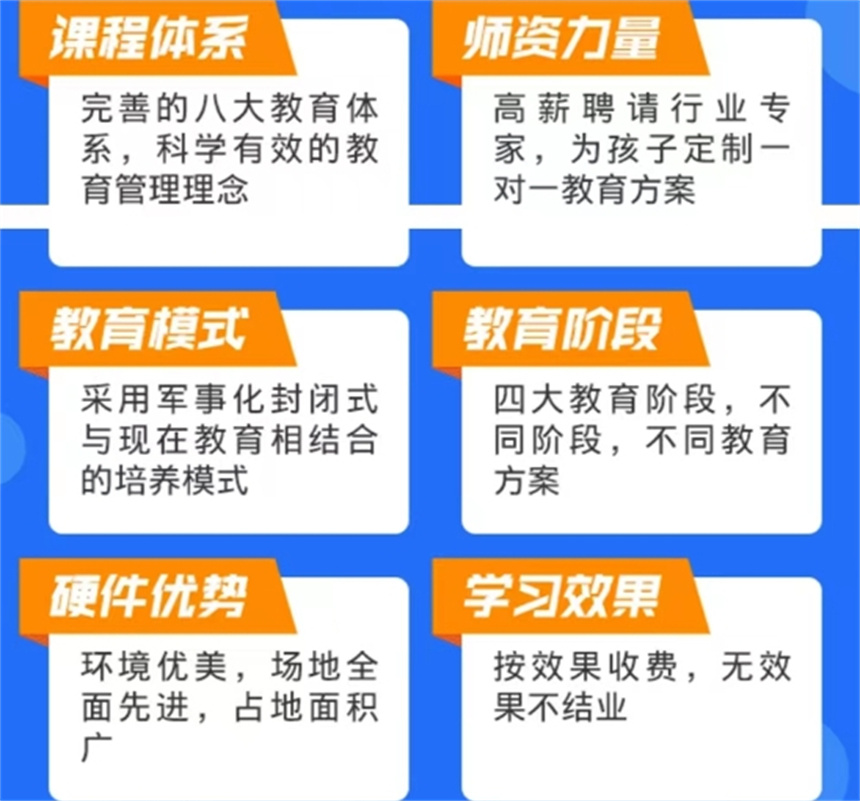 全方位引導(dǎo)教育,深入孩子的內(nèi)心,找到叛逆原因,定制矯正方案,學(xué)生到校后,專業(yè)心理老師對其進(jìn)行一對一心理輔導(dǎo),迅速找到孩子的心理癥結(jié)所在,從源頭上解決孩子的叛逆問題