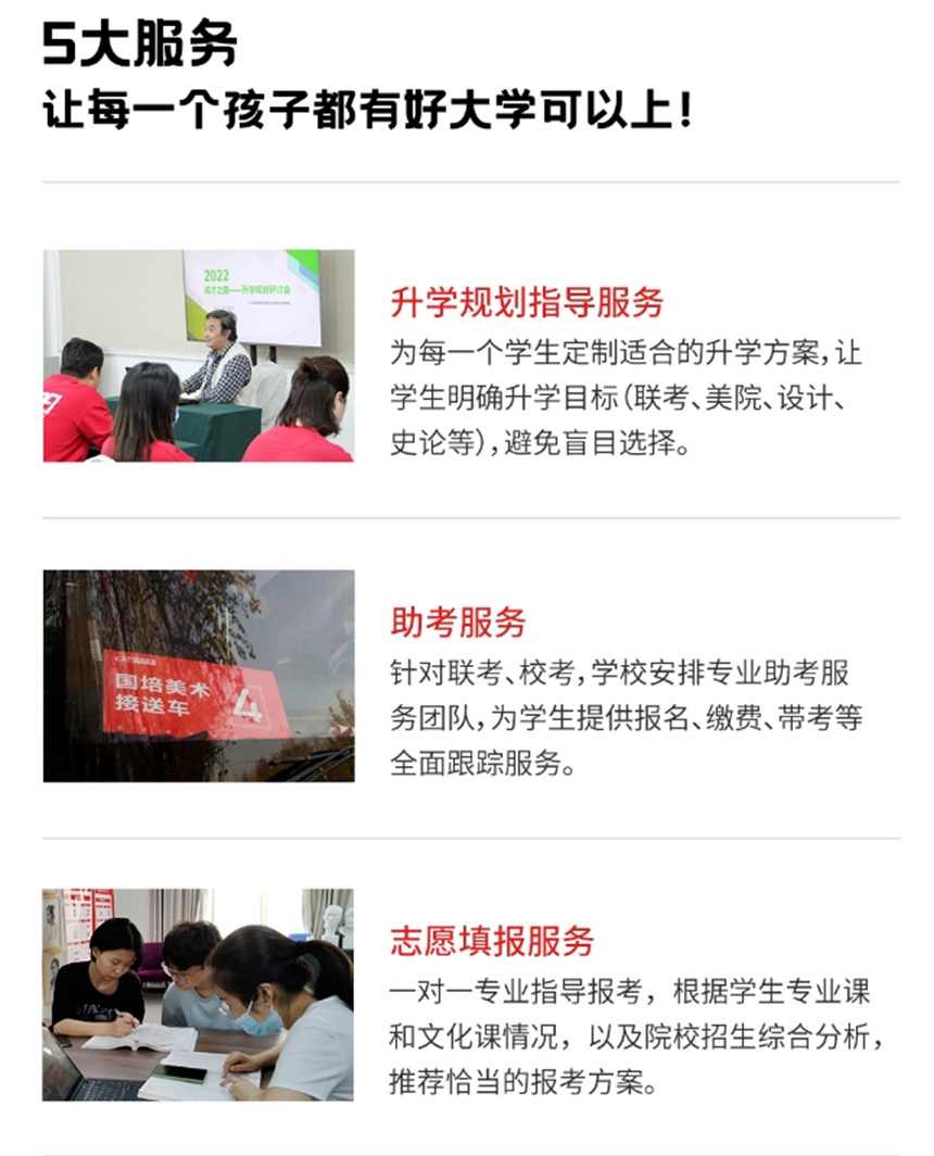 1.國(guó)培為藝考生提供專(zhuān)業(yè)與文化兼?zhèn)涞膶W(xué)習(xí)環(huán)境。美術(shù)教室寬敞明亮,配備專(zhuān)業(yè)畫(huà)架與展示墻,滿(mǎn)足素描、速寫(xiě)等多種課程需求;