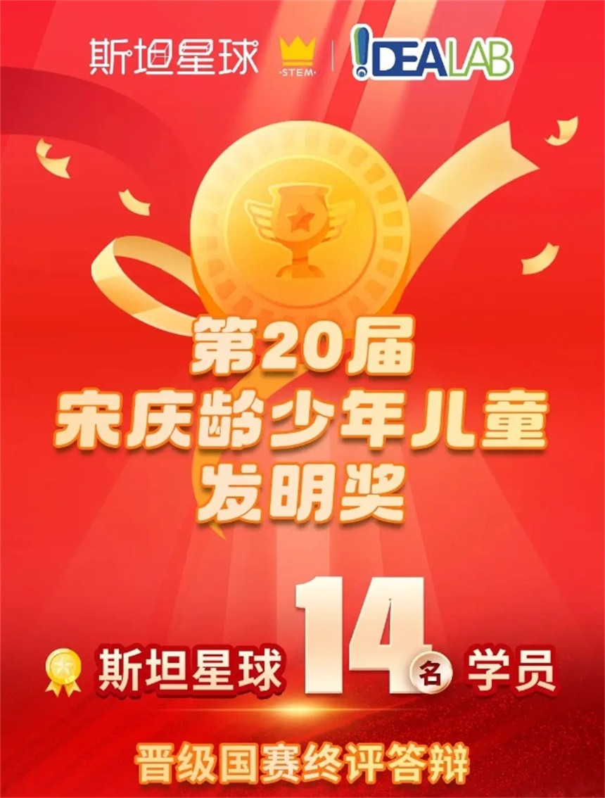 刷新全國(guó)紀(jì)錄!斯坦星球14名學(xué)員晉級(jí)宋慶齡少年兒童發(fā)明獎(jiǎng)國(guó)賽終評(píng),近日第二十屆宋慶齡少年兒童發(fā)明獎(jiǎng)初評(píng)結(jié)果揭曉,斯坦星球14名學(xué)員憑借扎實(shí)的創(chuàng)新成果成功晉級(jí)國(guó)賽終評(píng),將于8月中旬在河北雄安新區(qū)參與全國(guó)總決賽答辯。