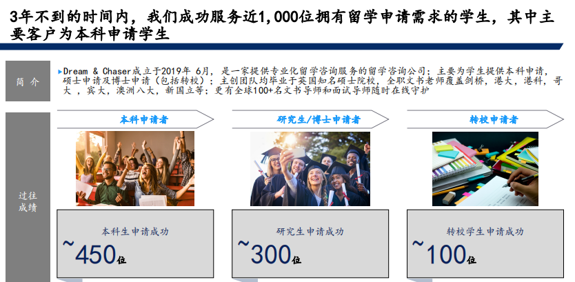 機(jī)構(gòu)簡介:夢嶼尋留學(xué)咨詢(Dream & Chaser)成立于2019年,是一家團(tuán)隊(duì)年輕化、服務(wù)專業(yè)化的留學(xué)咨詢公司,主要幫助國內(nèi)外高中生到博士生做專業(yè)留學(xué)咨詢服務(wù),賦能Z時(shí)代群體選擇真正熱愛的專業(yè)及海外院校,為未來求職做提前規(guī)劃,目前公司已服務(wù)近1,000名學(xué)生。